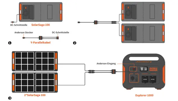 3. Connect the solar panels and the solar power cable with the Explorer 1500's DC input.